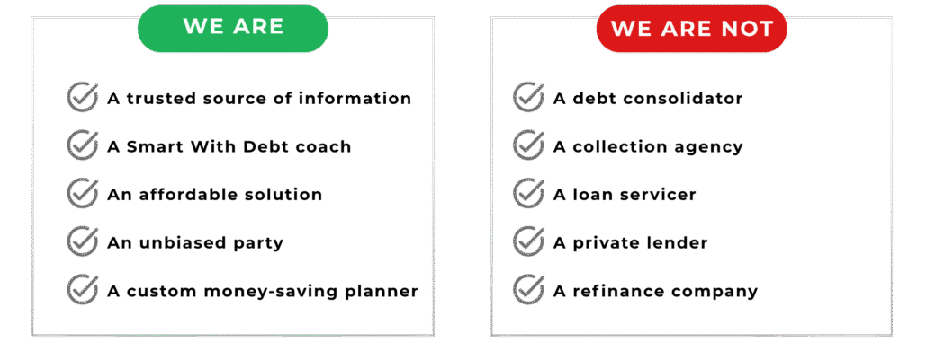 - Meet 1-on-1 with a Smart With Debt Coach to see your numbers side by side.
